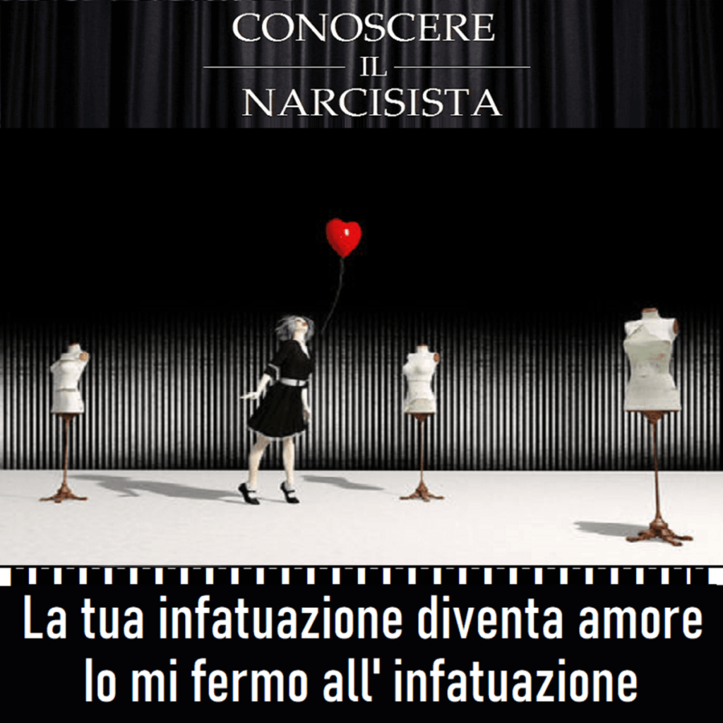 LE VERITÀ NARCISISTICHE – N. 31: “La tua infatuazione diventa amore. Io mi fermo all’infatuazione”.Paola De Carli3 Giugno 2017 Questa è una meme. Traduzione di PAOLA DE CARLI dal testo originale di H.G. TUDOR